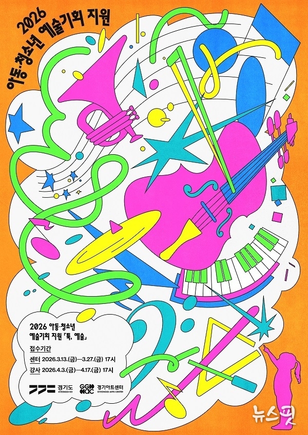 (뉴스핏 = 김수진 기자) 경기아트센터는 문화예술 접근 기회가 상대적으로 적은 아동·청소년을 대상으로 공연예술 기반 기초예술교육을 지원하는 ‘2026 아동·청소년 예술기회 지원 ‘툭, 예술’ 사업의 참여기관과 예술강사를 공개 모집한다고 12일 밝혔다. 도내 돌봄기관 약 45개소를 선정해 전문 예술강사를 파견하고 교육 운영비와 발표 기회를 지원할 예정이다.