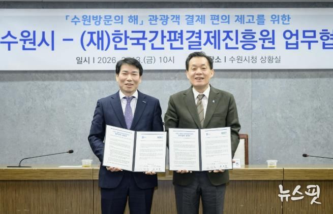수원시는 13일 시청 상황실에서 (재)한국간편결제진흥원과 업무협약을 체결하고, 외국인 관광객의 결제 편의성을 높이기 위해 협력하기로 했다.