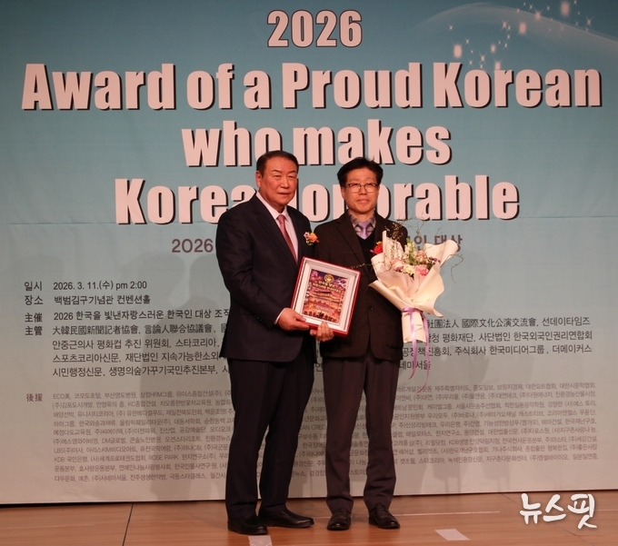 (뉴스핏 = 김수진 기자) 경기교통공사 정범채 경영기획실장이 지속적인 사회봉사와 장학금 기부 활동 공로를 인정받아 ‘2026 한국을 빛낸 자랑스러운 한국인 대상’을 수상했다.