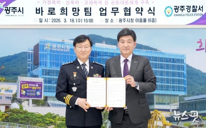 (뉴스핏 = 김호 기자) 광주시는 18일 시청 이음홀에서 광주경찰서와 가정폭력·성폭력·교제 폭력 등 폭력 피해자에 대한 공동 대응을 위해 ‘바로희망팀’ 업무협약을 체결했다.