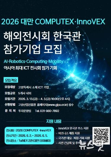 (뉴스핏 = 김수진 기자) 고양산업진흥원이 ‘2026 대만 COMPUTEX‧InnoVEX ’참가 기업을 모집한다고 18일 밝혔다.