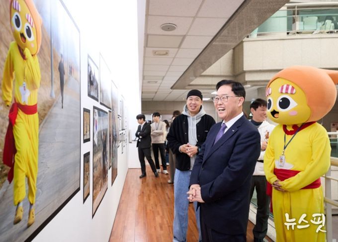 이날 강수현 양주시장은 사진작가 박철, 시 SNS 캐릭터 별산과 함께 전시장을 둘러보며 작품을 관람했다.