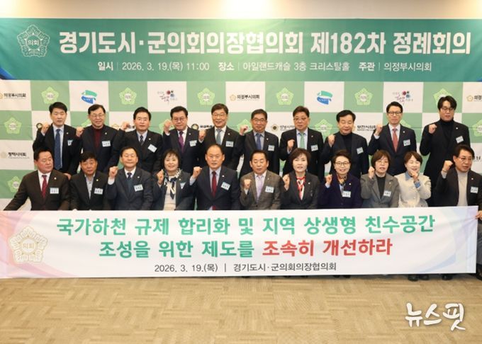 (뉴스핏 = 김수진 기자) 경기도시군의회의장협의회 회장인 동두천시의회 김승호 의장이 제안한 '국가하천 규제 합리화 및 지역 상생형 친수공간 조성을 위한 제도 개선 촉구 건의안'이 19일 의정부 아일랜드캐슬에서 열린 제182차 정례회의에서 만장일치로 채택됐다.