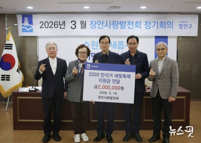 (뉴스핏 = 김호 기자) 수원시 장안구 대표 봉사단체 장안사랑발전회가 지난 19일, '2026 만석거 새빛축제'의 성공적인 개최를 응원하며 지원금 200만원을 전달했다.