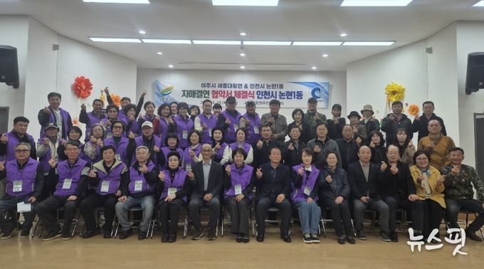 (뉴스핏 = 김호 기자) 여주시 세종대왕면 주민자치위원회와 인천시 남동구 논현1동 주민자치회가 지난 19일 자매결연 협약식을 체결했다. 협약식은 김희수 세종대왕면장과 이인희 논현1동장, 두 지역의 주민자치위원과 주민자치회원 등 총 50여 명이 함께한 가운데 열렸다.