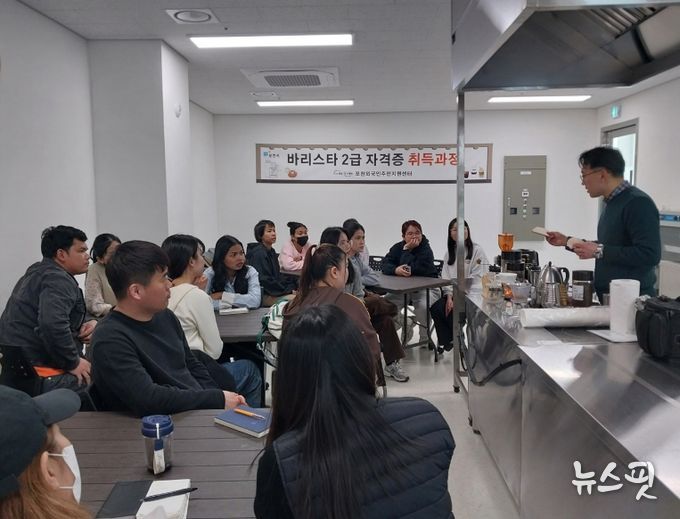 (뉴스핏 = 김호 기자) 포천시는 지난 21일 외국인주민의 안정적인 지역사회 정착과 취업 역량 강화를 위한 ‘바리스타 2급 자격증 취득과정’을 개설하고 첫 수업을 진행했다.