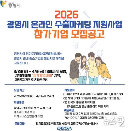 한편, 광명시는 지난해 온라인 수출 마케팅 지원사업 12개사 12건, 수출물류비 지원사업 12개사 147건을 지원하며 관내 기업의 해외시장 진출을 꾸준히 뒷받침해 왔다.