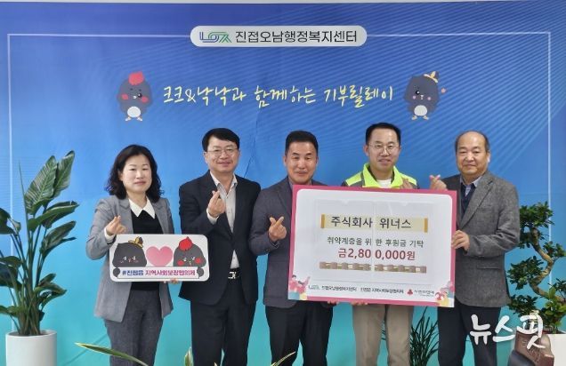 (뉴스핏 = 김호 기자) 남양주시는 24일 철마기업인회 소속 ㈜위너스(대표 김창성)가 진접오남행정복지센터에 지역 내 취약계층 지원을 위한 후원금 280만 원을 전달했다고 밝혔다.