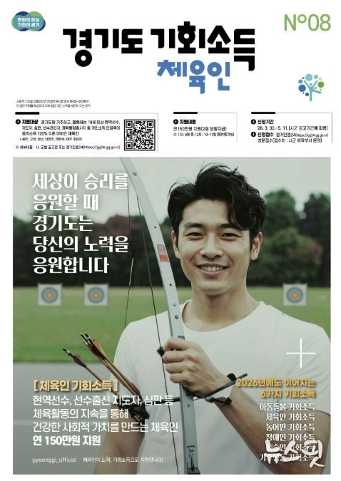 지원 대상은 도 공고일(2026. 3. 30.) 기준 군포시에 주민등록을 두고, 경기도에서 체육 활동을 하고 있는 만 19세 이상 체육인(2007. 12. 31. 이전 출생자)으로 ▲현역 선수 ▲지도자 ▲심판 ▲선수관리자 ▲행정 종사자 중 개별요건을 충족하고, 개인 월 소득인정액이 기준중위소득 120%(월 307만원) 이하인 경우 신청할 수 있다.