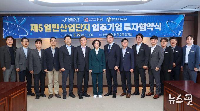 (뉴스핏 = 김수진 기자) 안성시는 2026년 3월 27일 시청 본관 2층 상황실에서 ㈜넥스트에어로스페이스와 ‘제5 일반산업단지 입주기업 투자유치 양해각서(MOU)’를 체결했다. 이번 협약을 통해 (주)넥스트에어로스페이스는 제5 일반산업단지에 총 254억 원을 투자하고 123명의 신규 고용을 창출하기로 했으며, 안성시는 산단 적기 조성과 기업 입주를 위한 행정적 지원을 아끼지 않기로 합의했다.