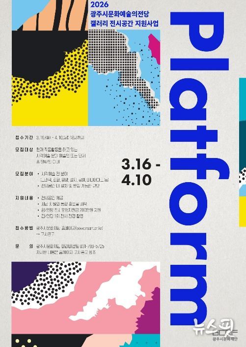 (뉴스핏 = 김호 기자) (재)광주시문화재단은 ‘2026 광주시문화예술의전당 갤러리 전시공간지원사업 'Platform'’ 참여 작가를 4월 10일까지 공모한다.