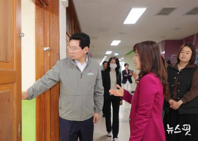 학부모들의 요청에 따라 진행된 이날 교통 봉사에서 이 시장은 교통지도에 앞서 학교 도서관 조성 현장을 방문해 교육환경 개선사업 추진 현황을 확인하고, 학교 관계자들과 함께 통학로와 학교 시설 전반을 점검했다.