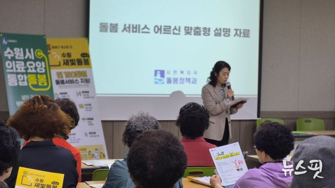 (뉴스핏 = 김호 기자) 수원특례시는 4월 30일까지 경로당과 노인복지관 등 어르신 이용 시설을 중심으로 ‘의료·요양 통합 돌봄 서비스’와 ‘수원새빛돌봄(누구나)’을 집중적으로 홍보한다.