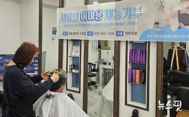 (뉴스핏 = 김호 기자) 수원시 팔달구 매교동 행정복지센터는 지난 8일 매교동 소재 마를린 헤어숍과 함께 ‘사랑의 이미용 서비스’를 실시했다. 이날 머리 손질을 희망하는 관내 어려운 이웃 16명에게 커트 및 드라이 서비스를 제공하며 따뜻한 나눔의 시간을 가졌다.