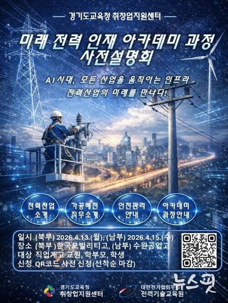 (뉴스핏 = 김수진 기자) 경기도교육청이 오는 13일과 15일 양일간 도내 직업계고 학생의 전력산업 분야 진로 탐색과 취업 역량 강화를 위한 ‘미래 전력 인재 아카데미 과정 사전설명회’를 개최한다.