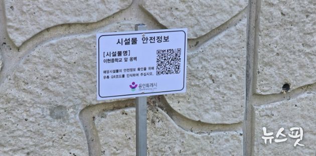(뉴스핏 = 김수진 기자) 용인특례시는 지역 내 육교와 옹벽에 안전 점검 이력과 결과를 시민 누구나 알 수 있도록 ‘도로시설물 안전 점검 표시제’를 시행한다고 14일 밝혔다.