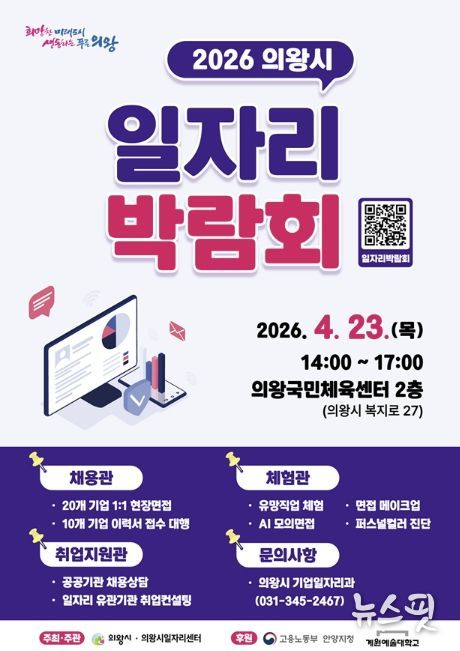 (뉴스핏 = 김수진 기자) 의왕시가 구인 기업과 구직자가 한자리에서 만나는 채용의 장인 ‘2026 의왕시 일자리박람회’를 4월 23일 의왕국민체육센터에서 개최한다.