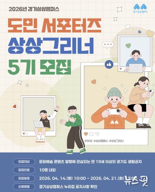 (뉴스핏 = 김수진 기자) 경기문화재단 경기상상캠퍼스는 오는 4월 21일까지 도민 서포터즈 ‘상상그리너’ 5기를 모집한다.