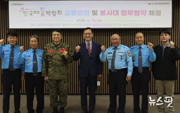 (뉴스핏 = 김수진 기자) (재)고양국제박람회재단이 지난 15일 일산동·서부모범운전자회, 해병대고양시전우회와 함께 일산호수공원 고양꽃전시관에서‘2026고양국제꽃박람회 교통관리를 위한 업무협약’을 체결했다.