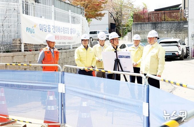 (뉴스핏 = 김호 기자) 파주시는 지난 16일, 여름철 자연재난 대책기간(매년 5월 15일~10월 15일)을 앞두고 사전 대비의 일환으로, 야당동 간이배수펌프장 설치사업 현장과 금촌 배수펌프장에 대한 현장점검을 실시했다.