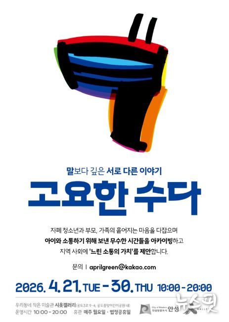 (뉴스핏 = 김수진 기자) 안성시 시옷갤러리는 오는 4월 21일부터 4월 30일까지 자폐 청소년과 그 가족이 함께 참여하는 전시 《고요한 수다》를 개최한다고 밝혔다.