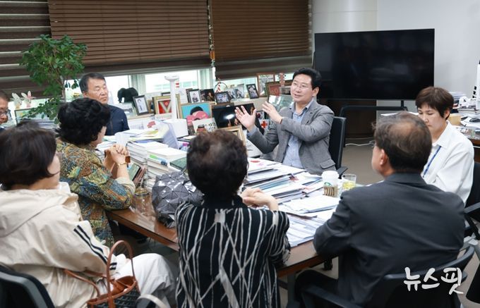 이 시장은 이날 시장실을 찾은 성동마을LG빌리지1차아파트 입주자대표회의 구자훈 회장 등 주민 9명과 대화했다.