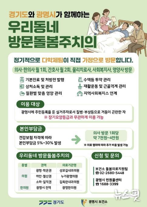 (뉴스핏 = 김호 기자) 장기요양등급이 없는 광명시민도 집에서 방문돌봄주치의 진료를 받을 수 있게 된다.