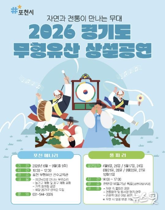시 관계자는 “이번 상설공연은 포천의 소중한 무형유산이 시민들의 일상 속으로 깊숙이 다가가는 소중한 기회가 될 것”이라며, “앞으로도 우리 시의 유구한 역사와 문화자원을 관광 콘텐츠와 적극 연계하여, 누구나 찾고 싶고 머물고 싶은 ‘품격 있는 인문도시 포천’을 만들어 나가겠다”고 밝혔다.
