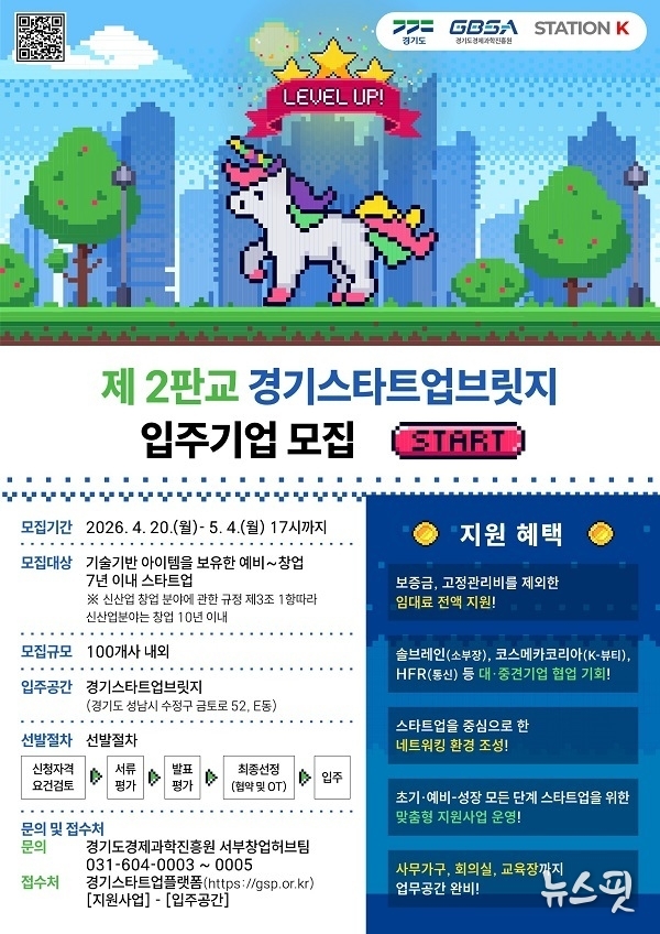 (뉴스핏 = 김수진 기자) 경기도와 경기도경제과학진흥원(이하 경과원)이 민관협력 창업 거점인 ‘경기스타트업브릿지’에 입주할 신규 입주기업 125개사를 다음달 4일까지 모집한다고 21일 밝혔다.