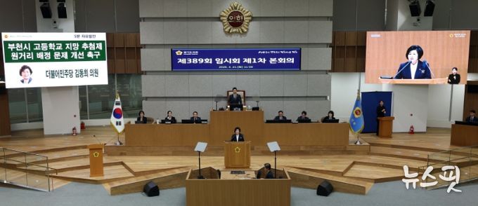 (뉴스핏 = 김수진 기자) 경기도의회 여성가족평생교육위원회 김동희 부위원장(더불어민주당, 부천6)은 제389회 경기도의회 임시회 제1차 본회의 5분 자유발언을 통해 부천시 고등학교 지망 추첨제 운영 과정에서 발생하고 있는 원거리 배정 문제를 지적하고 제도 개선을 강력히 촉구했다.