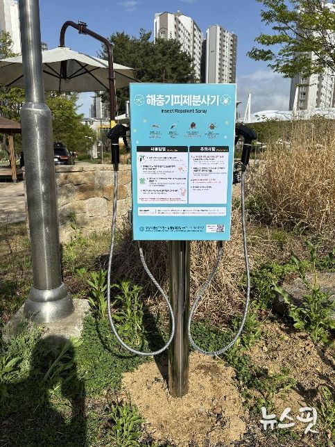 (뉴스핏 = 김호 기자) 수원시 권선구보건소가 기온 상승과 야외 활동 증가 시기를 맞아 20일 관내 주요 공원과 산책로에 해충기피제 분사기를 확대 설치했다.