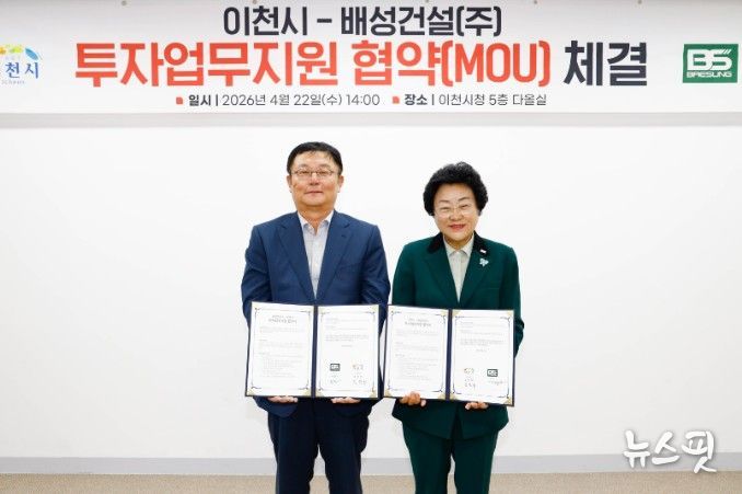 (뉴스핏 = 김수진 기자) 이천시가 22일 배성건설㈜와 203억 원 규모의 투자업무지원협약을 체결하고, 기업의 신규 공장 신설을 본격 지원한다.