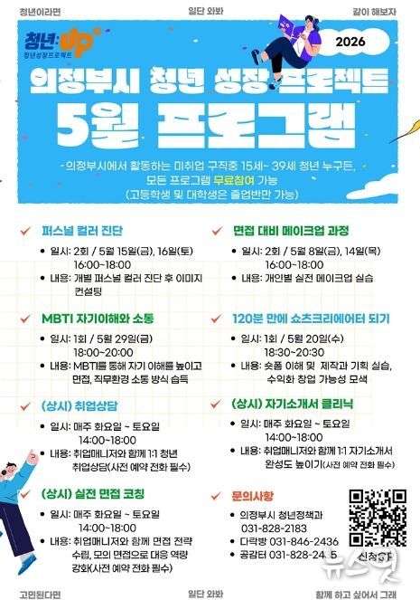 (뉴스핏 = 김호 기자) 의정부시는 미취업 청년의 취업 준비 역량 강화를 위해 ‘청년성장프로젝트’ 5월 프로그램을 운영한다.