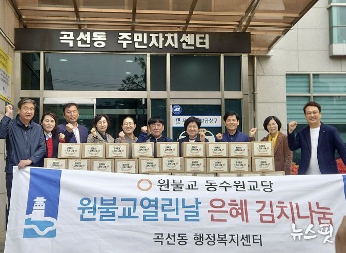 (뉴스핏 = 김호 기자) 원불교 동수원교당은 지난 22일 수원시 권선구 곡선동 행정복지센터에서 봄맞이 ‘은혜김치 나눔’ 전달 행사를 개최하고, 정성껏 담근 김치 30박스를 곡선동에 전달했다.