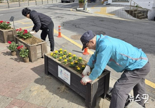 이번 활동은 통장협의회를 중심으로 주민들이 직접 참여하고 주도한 환경정비로, 관내에 설치된 크고 작은 화분 약 40여 개에 다양한 봄꽃을 식재하고 주변 환경을 함께 정비하며 마을 곳곳에 화사한 봄기운을 더했다.