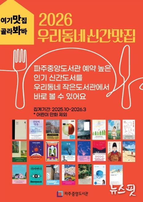 (뉴스핏 = 김호 기자) 파주시 중앙도서관은 지역 내 작은도서관 활성화를 위해 2024년부터 추진해 온 '우리동네 신간맛집' 사업을 지난 23일부터 관내 13개 작은도서관과 함께 본격 운영하고 있다.