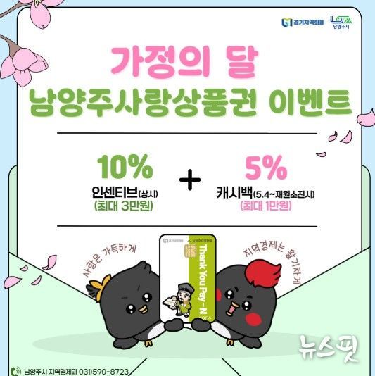 (뉴스핏 = 김수진 기자) 남양주시는 남양주사랑상품권 인센티브 예산을 확대하고 5월 가정의 달을 맞아 특별 혜택을 제공한다고 27일 밝혔다.