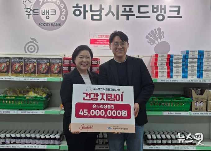 (뉴스핏 = 김호 기자) 사회복지법인 하남시사회복지협의회는 4월 27일 스타필드하남(점장 유영인)으로부터 온누리상품권 4,500만원을 기탁받았다. 전달식은 이날 협의회에서 진행됐으며, 기탁된 상품권은 하남시푸드뱅크를 이용하는 취약계층 3,500세대에게 먹거리로 지원될 예정이다.
