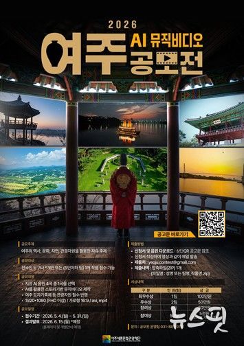 (뉴스핏 = 김수진 기자) 여주세종문화관광재단은 여주시 관광 콘텐츠를 활용한 시민 참여형 영상 제작 프로젝트인 '2026 여주 AI 뮤직비디오 공모전'을 개최한다고 29일 밝혔다.