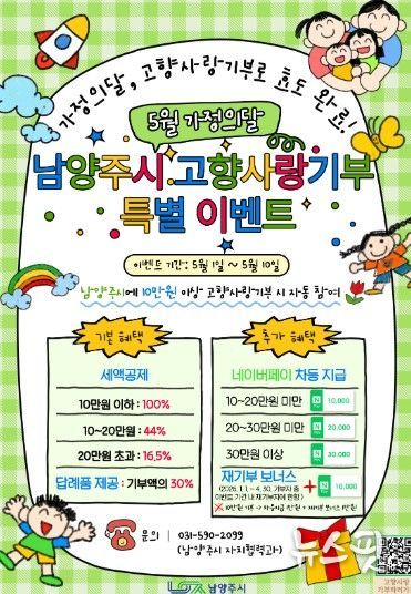 (뉴스핏 = 김호 기자) 남양주시는 가정의 달을 맞아 5월 1일부터 10일까지 고향사랑기부 특별선물 증정 이벤트를 추진한다고 30일 밝혔다.