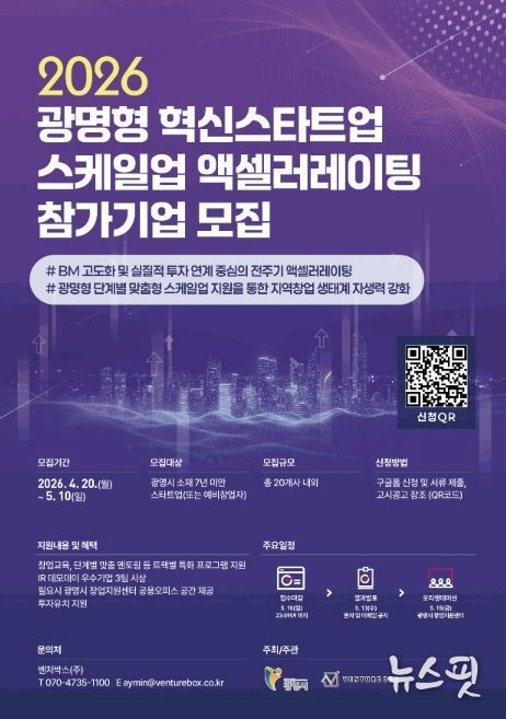 시는 오는 5월 10일까지 ‘2026년 광명형 혁신스타트업 스케일업 액셀러레이팅’ 참가기업을 모집한다.