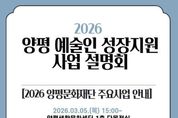 (뉴스핏 = 김호 기자) 양평문화재단은 오는 3월 5일 양평생활문화센터 1층 다목적실에서 지역 예술인의 지속 가능한 활동을 지원하기 위한 ‘2026 예술인 성장지원사업 설명회’를 개최한다고 19일 밝혔다. 이번 사업은 지역 내 신진·청년 예술인을 중심으로 창작 역량에 비해 부족했던 성장 기회를 제공하고, 기존 지원사업을 일회성 지원으로 그치지 않고 지속적인 지원 체계를 구축하기 위해 마련됐다. 재단은 예술인 스스로 활동할 수 있는 환경을 만들고 지역 예술 생태계를 활성화하는 것을 목표로 하고 있다. 설명회는 크게 세 가지 내용으로 구성된다. 첫째, 2026년 진행 예정인 공모 지원사업 계획을 공유한다. 양평문화재단의 주요 사업인 ‘모든예술31’, ‘물맑은 어울림 음악회’, ‘생활문화지원사업’은 물론 외부 기관의 공모사업 정보도 함께 제공될 예정이다. 둘째, 예술인을 위한 행정 실무 교육이 진행된다. 공모사업의 구조와 신청 절차, 사업계획서 작성 방법, 정산 시 유의사항 등 현장에서 필요한 실무 중심 교육을 통해 예술인의 행정 부담을 완화할 것으로 기대된다. 셋째, 향후 예술인 지원 확대를 위한 수요 조사를 실시한다. 재단은 예술인의 활동 실태와 필요한 지원