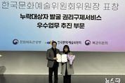 (뉴스핏 = 김수진 기자) 군포시 수리동이 전국 3천6백여개 읍면동을 대상으로 한 “2025년 통합문화이용권(문화누리카드) 누락대상자 권리구제 서비스” 부문 우수기관으로 선정됐다. 이에 따라 지난 2월 26일 모두예술극장(서울 서대문구 충정로 7)에서 열린 시상식에서 한국문화예술위원회 위원장상을 수상했다. 문화체육관광부와 한국문화예술위원회가 함께 주관한 이 날 행사는 전국 읍면동 행정복지센터를 대상으로 ‘문화누리카드’를 신청하지 못한 시민을 얼마나 적극적으로 발굴했는지와 시민의 문화 향유권을 보장하기 위해 어떤 노력을 기울였는지를 종합 검토해 총 63곳의 우수기관을 선정했다. 수리동은 카드 발급 대상자의 70% 이상이 고령자인 지역 특성을 고려, 지난 해 미수혜자를 대상으로 ‘직접 찾아가는 적극행정’을 추진하여 카드 발급부터 사용 방법까지 밀착 지원했다. 그 결과 누락대상자의 카드 발급률 91%를 달성하는 높은 성과를 거뒀다. 특히, 수리동이 수상한 한국문화예술위원회 위원장상은 전국 읍면동 행정복지센터 가운데 고령자·장애인 등 문화소외계층을 적극 발굴하여 우수한 실적을 거둔 기관에게 수여되는 상으로 현장 일각에