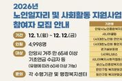 (뉴스핏 = 김수진 기자) 안양시가 1일부터 12일까지 건강하고 활기찬 노후를 위한 ‘2026년 노인일자리 및 사회활동 지원사업’의 참여자 4998명을 모집한다. 참여자 규모는 유형별로 ▲노인공익활동 3155명 ▲노인역량활용 1106명 ▲공동체사업단 574명 ▲취업지원 163명 등이다. 노인일자리사업의 수행기관은 ▲안양시노인종합복지관 ▲비산노인종합복지관 ▲안양시니어클럽 ▲만안·동안노인지회 ▲경기실버포럼 ▲(사)위니버스 ▲시니어복지사회적협동조합 ▲만안구청 ▲동안구청 등 10곳이며, 참여자는 수행기관에서 추진하는 다양한 일자리·사회활동에 참여하게 된다. 신청 자격은 공고일(11월 27일) 기준 안양시에 주민등록이 되어 있는 어르신이다. 세부 기준은 ▲노인공익활동은 65세 이상 기초연금·직역연금 수급자(배우자 포함) ▲노인역량활용은 65세 이상(일부 유형은 60세 이상) ▲공동체사업·취업지원은 60세 이상이다. 다만, 생계급여 수급자(취업지원 제외), 건강보험 직장가입자, 장기요양등급자 등 일부 대상자는 신청이 제한된다. 희망자는 신분증과 주민등록등본 등을 지참하고 해당 수행기관 또는 거주지 동 행정복지센터로 방문해 신청할 수 있다. 참여자는 보건복지부 선발기준표