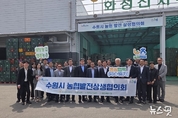 (뉴스핏 = 김수진 기자) 농협중앙회 경기지역본부와 수원시 농협발전상생협의회는 14일 수원원예농협 산지유통센터(APC)에서 계통 간 경쟁력 강화를 위한 간담회를 개최했다. 이번 협의회에는 농협중앙회 경기지역본부를 비롯해 수원시지부, 수원농협, 수원축협, 수원원예농협 등이 참여했다. 이날 참석자들은 산지유통센터(APC)를 견학하며 지역 농산물 유통 활성화와 농업인 실익 증진 방안을 논의했다. 또한 각 농협 간 주요 현안을 공유하고, 공동사업 확대와 지역사회 공헌활동 강화 등 상생 발전을 위한 협력 과제를 폭넓게 모색했다. 특히 지역 농업·농촌의 가치 확산과 범농협 차원의 사회공헌 문화 조성을 위해 ‘농심천심운동’ 홍보 활동도 함께 진행하며 농업인과 지역사회가 함께 성장하는 농협의 역할을 강조했다. 엄범식 경기농협 총괄본부장은 “수원시 관내 농협 간 긴밀한 소통과 유기적인 협력을 통해 지역 농업 발전과 농업인 실익 증진에 최선을 다하겠다”며 “상생과 협력을 기반으로 지역사회와 함께 성장하는 경기농협이 되도록 지속적으로 노력하겠다”고 말했다.