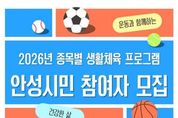 (뉴스핏 = 김수진 기자) 안성시는 시민 누구나 일상에서 부담 없이 운동을 즐길 수 있도록 ‘2026 종목별 생활체육 프로그램’을 운영하고, 4월부터 참가자를 모집 중이라고 16일 밝혔다. 이번 프로그램은 오는 7월까지 안성시 관내 종목별 체육시설에서 진행된다. 육상, 수영, 배드민턴 등 총 30개 종목이 마련되어 있어 시민들은 자신의 관심사와 체력 수준에 맞는 운동을 자유롭게 선택할 수 있다. 특히 참가비가 전액 무료로 운영되어 경제적 부담 없이 참여할 수 있는 점이 큰 장점이다. 운동을 처음 시작하는 입문자도 쉽게 적응할 수 있도록 기초 실무 위주로 구성됐으며, 다만 일부 종목에 한해 장비 대여 등 최소한의 자부담 비용이 발생할 수 있다. 참여 대상은 운동에 관심 있는 안성시민 누구나 연령과 경험에 관계없이 신청 가능하다. 모집은 종목별 정원에 따라 선착순으로 진행되며, 종목별 담당자에게 직접 문의하거나 안성시체육회 안내를 통해 신청하면 된다. 안성시 관계자는 “생활체육은 건강한 삶을 유지하기 위한 가장 쉽고 확실한 방법”이라며, “이번 프로그램을 통해 많은 시민이 일상 속에서 운동의 즐거움을 찾고 삶의 활력을 얻길 바란다”고 전했다.