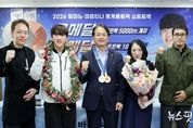 (뉴스핏 = 김수진 기자) 고양특례시는 27일 오후 2시 시청 대회의실에서 ‘2026 밀라노-코르티나 동계올림픽’ 쇼트트랙 메달리스트인 고양시청 빙상팀 임종언 선수의 성과를 축하하는 환영 기자회견을 개최했다. 이날 기자회견은 단순한 질의응답을 넘어 임종언 선수의 값진 성과를 축하하는 따뜻한 환영의 장으로 꾸며졌다. 특히 임 선수가 올림픽 현장에서 직접 목에 걸었던 은메달과 동메달을 이동환 고양시장에게 직접 걸어주는 특별한 세리머니가 진행됐다. 이는 고양시민의 뜨거운 응원에 보답하고, 시의 전폭적인 지원에 감사를 표하는 의미를 담아 현장에 참석한 관계자들로부터 큰 박수를 받았다. 이동환 시장은 이에 화답하는 의미로 임 선수에게 축하의 꽃목걸이와 꽃다발을 전달하고, 관련 조례와 규정에 따라 성과 포상금 판넬을 수여하며 선수의 노고를 격려했다. 올해 1월 고양시청에 공식 입단한 임종언 선수는 고양시의 대표적 빙상 시설인 ‘고양 어울림누리 빙상장’에서 연습하며 기량을 닦아온 ‘고양의 인재’다. 입단과 동시에 국가대표로서 올림픽에 출전한 그는 남자 1,000m 동메달과 5,000m 계주 은메달을