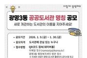 (뉴스핏 = 김호 기자) 광명시가 광명3동 새 도서관의 이름을 지어줄 주인공을 찾는다. 시는 올해 10월 개관 예정인 ‘광명3동 공공도서관’ 명칭 공모를 9일부터 30일까지 22일간 진행한다고 9일 밝혔다. 광명3동 공공도서관은 광명3동 공공복합청사(광명동 104-9) 내 지상 5~6층에 연면적 1천600㎡ 규모로 조성ᅟᅡᆫ다. 어린이·종합 자료실을 비롯해 실감 놀이터, 어린이 창작공간, 강의실, 동아리실 등 전 세대가 함께 이용할 수 있는 복합문화공간으로 운영할 예정이다. 이번 명칭 공모는 도서관이 시민의 일상과 가장 가까운 생활 문화공간으로 자리 잡을 수 있도록, 공간의 성격과 가치를 잘 담아내면서도 모두에게 친숙한 이름을 찾기 위해 마련했다. 명칭의 적합성, 창의성, 대중성 등을 종합적으로 평가해 최우수상 1건(10만 원), 우수상 1건(7만 원), 장려상 1건(5만 원)을 선정하고, 온누리상품권으로 시상할 계획이다. 선정 결과는 오는 2월 중 광명시도서관 누리집에서 공개한다. 명칭 공모는 도서관에 관심 있는 누구나 참여할 수 있다. 온라인 양식을 작성해 제출하거나, 광명3동 행정복지센터로 방문해 비치된 서식을 작성 후 제출하면 된다. 또한 광명시도서관