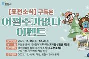 (뉴스핏 = 김호 기자) 포천시는 시민과의 소통을 강화하기 위해 오는 12월 3일까지 시정 소식지 ‘포천소식’ 구독 이벤트를 진행한다고 26일 밝혔다. 이번 이벤트는 12월 3일까지 진행되며, 시정 소식지 ‘포천소식’을 구독하면 별도의 절차 없이 자동으로 이벤트에 응모된다. ‘포천소식’은 총 24면으로 구성된 월간지로, △기획 △시정소식 △문화 △일자리 △생활정보 등 포천의 주요 현안과 시민들에게 유용한 생활 밀착형 정보를 종합적으로 제공하고 있다. 이벤트 참여 방법은 포천시청 공식 누리소통망(SNS)에 게시된 이벤트 글에 ‘좋아요’와 댓글을 남기고, 네이버폼을 통해 소식지 구독을 신청하면 된다. 시는 참여자 중 추첨을 통해 총 130명에게 다이소 모바일상품권 1만 원을 제공할 예정이다. 포천시 관계자는 “이번 이벤트를 통해 다양한 생활정보와 시정 소식을 신속하게 전하는 ‘포천소식’을 더 많은 시민들에게 알릴 수 있기를 기대한다”며 “앞으로도 시민과의 소통을 확대하기 위한 다양한 노력을 지속하겠다”고 말했다.