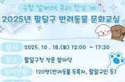 (뉴스핏 = 김호 기자) 수원시 팔달구는 10월 18일 오후 12시부터 17시 30분까지 팔달구청 정문 앞마당에서 ‘2025년 팔달구 반려동물 문화교실’을 개최한다고 밝혔다. 반려동물 문화교실은 성숙한 반려문화 확산과 올바른 반려동물 관리, 양육 방법을 알리기 위해 마련됐으며 반려동물 등록자 및 팔달구민 120명을 대상으로 추진한다. 교육 프로그램은 △인식표 만들기 △산책 그룹 훈련 △반려견 셀프 미용으로 총 3개 프로그램을 추진한다. 12시부터 진행하는 ‘인식표 만들기’는 반려견 유실 방지를 위해 동물등록번호와 견주 연락처를 새긴 맞춤형 인식표를 직접 제작할 수 있고, 14시부터는 ‘산책 그룹 훈련’에서는 산책줄 핸들링과 돌발 상황 시 대처법 등 및 올바른 산책 방법에 대해 배워볼 수 있다. 15시 30분에는 초보자도 쉽게 실천할 수 있는 ‘반려견 셀프 미용 수업’이 준비되어 있다. 팔달구 관계자는 “2025년 반려동물 문화교실 개최를 통해 구민들이 반려동물을 책임감 있게 관리하고, 올바른 반려 문화가 조성되길 바란다“라고 말했다. 한편, 팔달구는 구 홈페이지, 안내문자 및 QR코드를